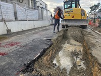 大量の湧水の為掘削作業及び、高さ管理のための丁張設置が困難となります。