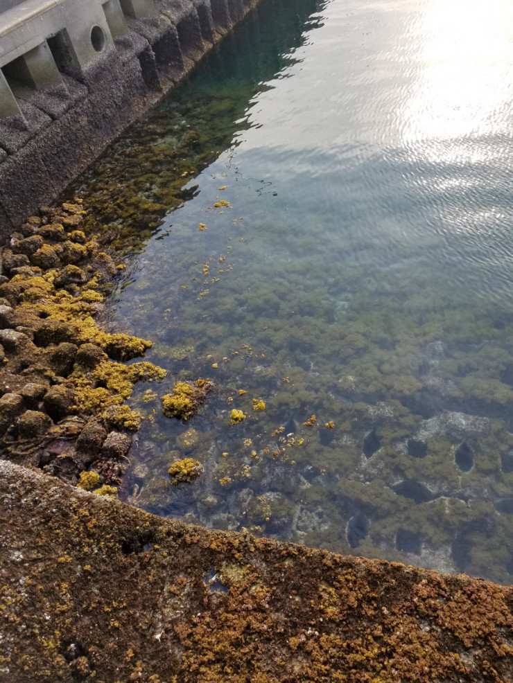 とある港湾施設内。透明度が高く、海藻類が繁殖していて藻場を確認することができます。