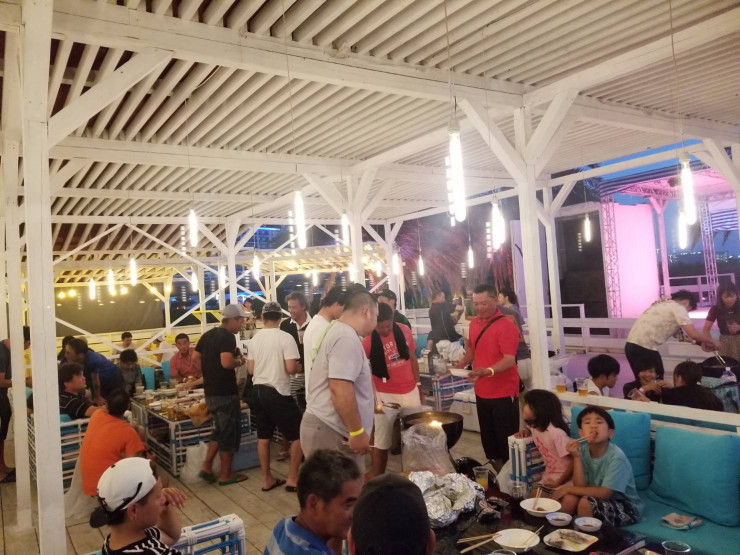 試合後の懇親会は、せっかく南部へ来たので流行りのホットスポットを利用させてもらいました。波の上海空公園内