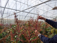 ビニールハウスの天井ビニールの開閉(温度管理)を行っていきます。