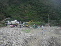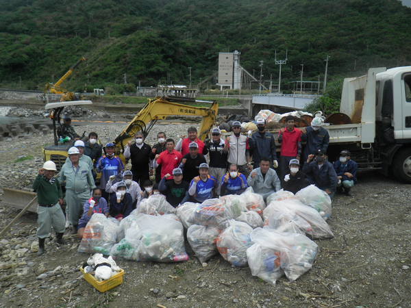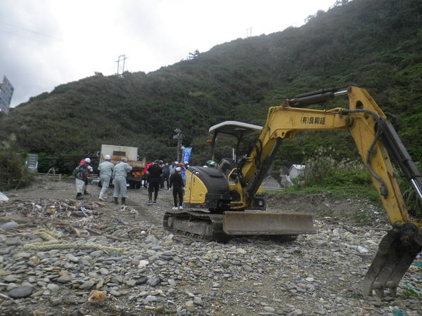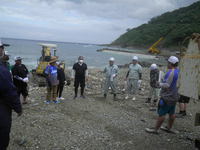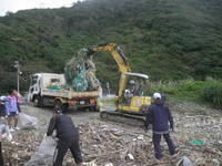 人力では運搬できない大きな漂流物が多いため、現地海岸の護岸工事を受注していた業者さんへ協力を依頼しタイアップして作業を終えることが出来ました。
