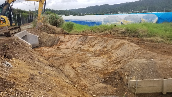 国頭村での集合住宅建築計画の関連で、近隣の雨水排水路の修繕工事を行いました。