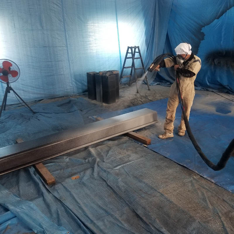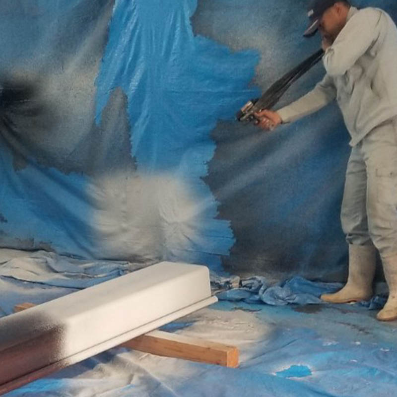 ピュアポリウレア樹脂は、吹付け後数秒で硬化が始まり、数分後には歩行可能となるため、驚異的なスピードでの施工や